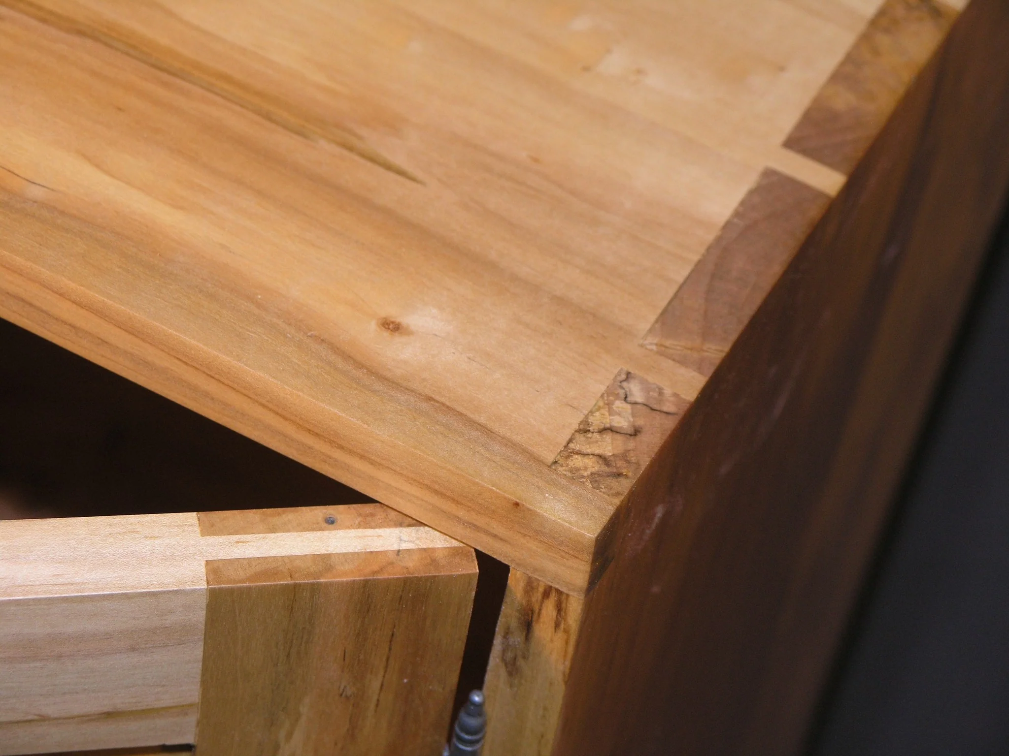 Solid Maple Cabinet with stunning spalted maple details. This entire item was meticulously made using mostly hand tools. The case was assembled with hand cut dovetails. The drawer box was also made with matching dovetails. All the drawer pulls were turned on the lathe by hand with matching wood. Each pull was tenoned and wedged to the door frame, making them a permanent component.